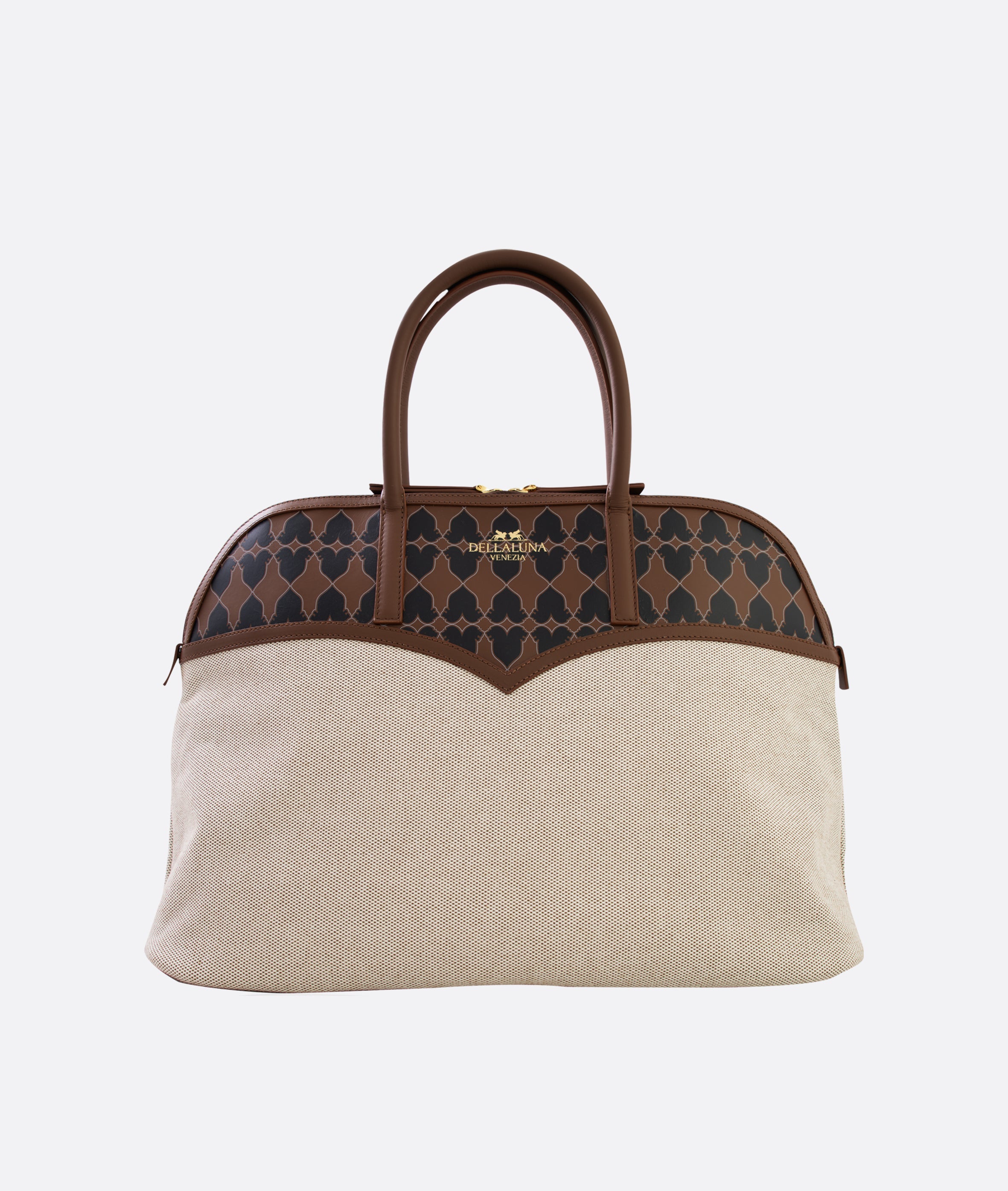 Elegance meets prestige travel in this exclusive collaboration with Belmond Hotels. Crafted from fine canvas with Dellaluna’s signature Leoni pattern, the interior features a spacious laptop compartment, three side pockets, and a zipper closure.