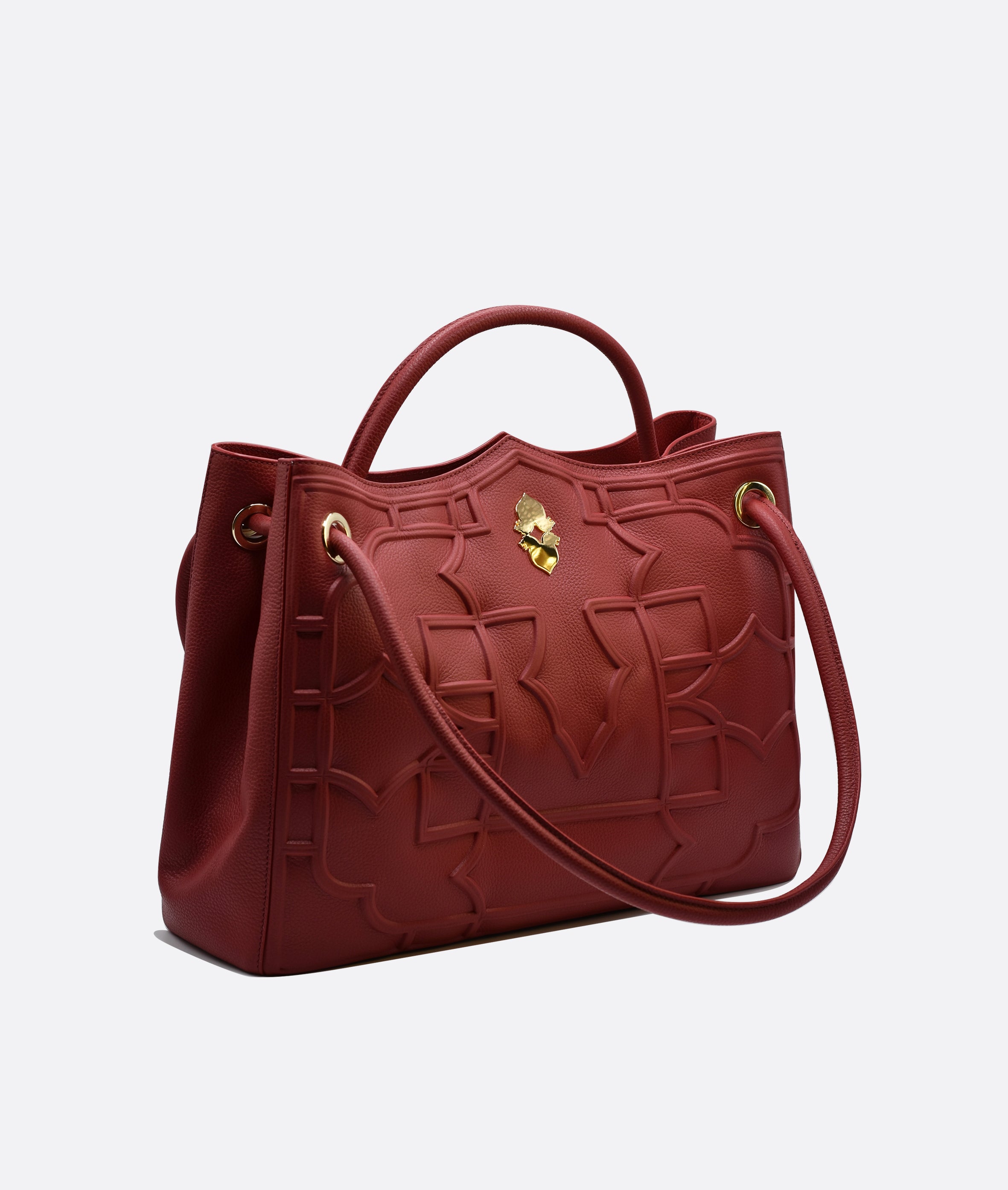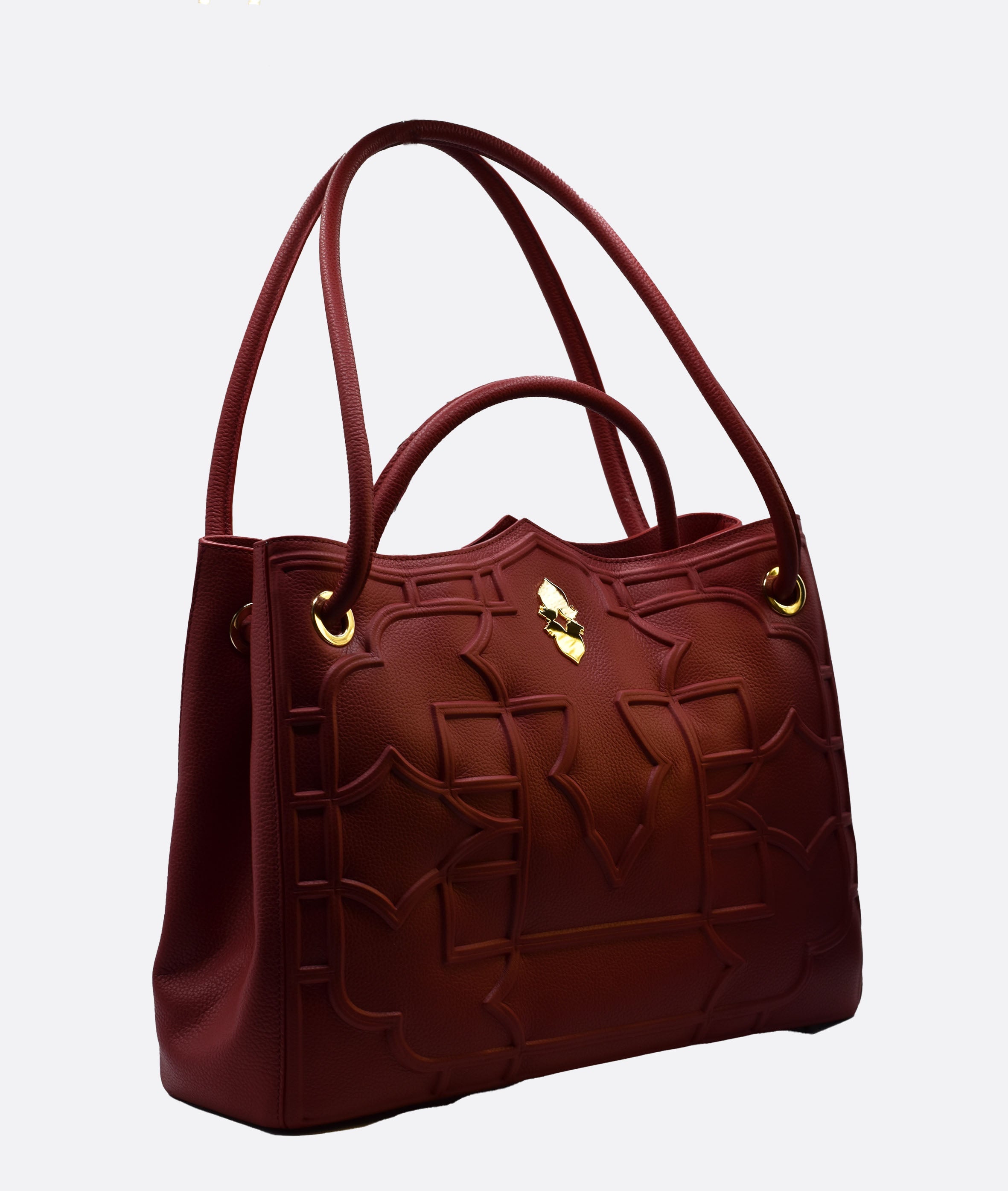 Vittoria 40 is the ultimate expression of versatility and glamour, handcrafted in structured Togo leather and lined in wine-red Alcantara, a material renowned for its refined durability.