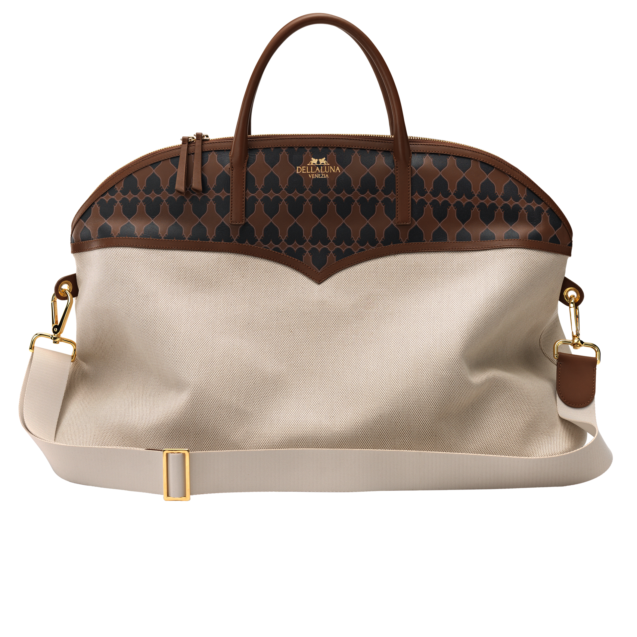 Elegance meets prestige travel in this exclusive collaboration with Belmond Hotels. Crafted from fine canvas with Dellaluna’s signature Leoni pattern, the interior features a spacious laptop compartment, three side pockets, and a zipper closure.
